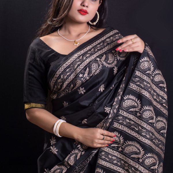 Lichi Pattu Weaving Thread Work Design Silk Saree